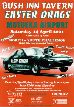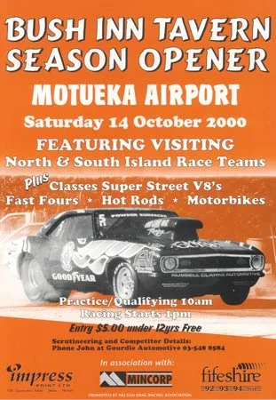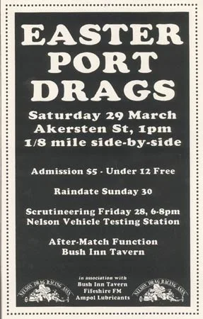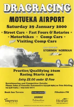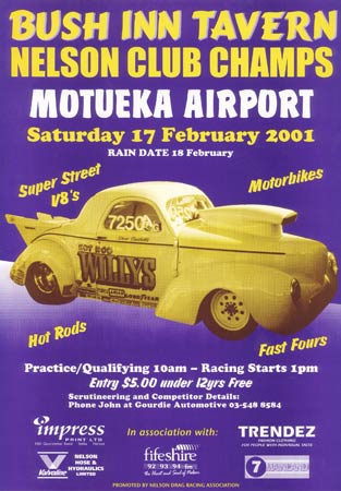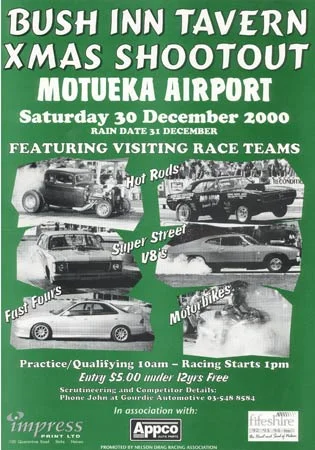 Below is a small selection of posters from Nelson Drag Racing Association's race meetings over the years.